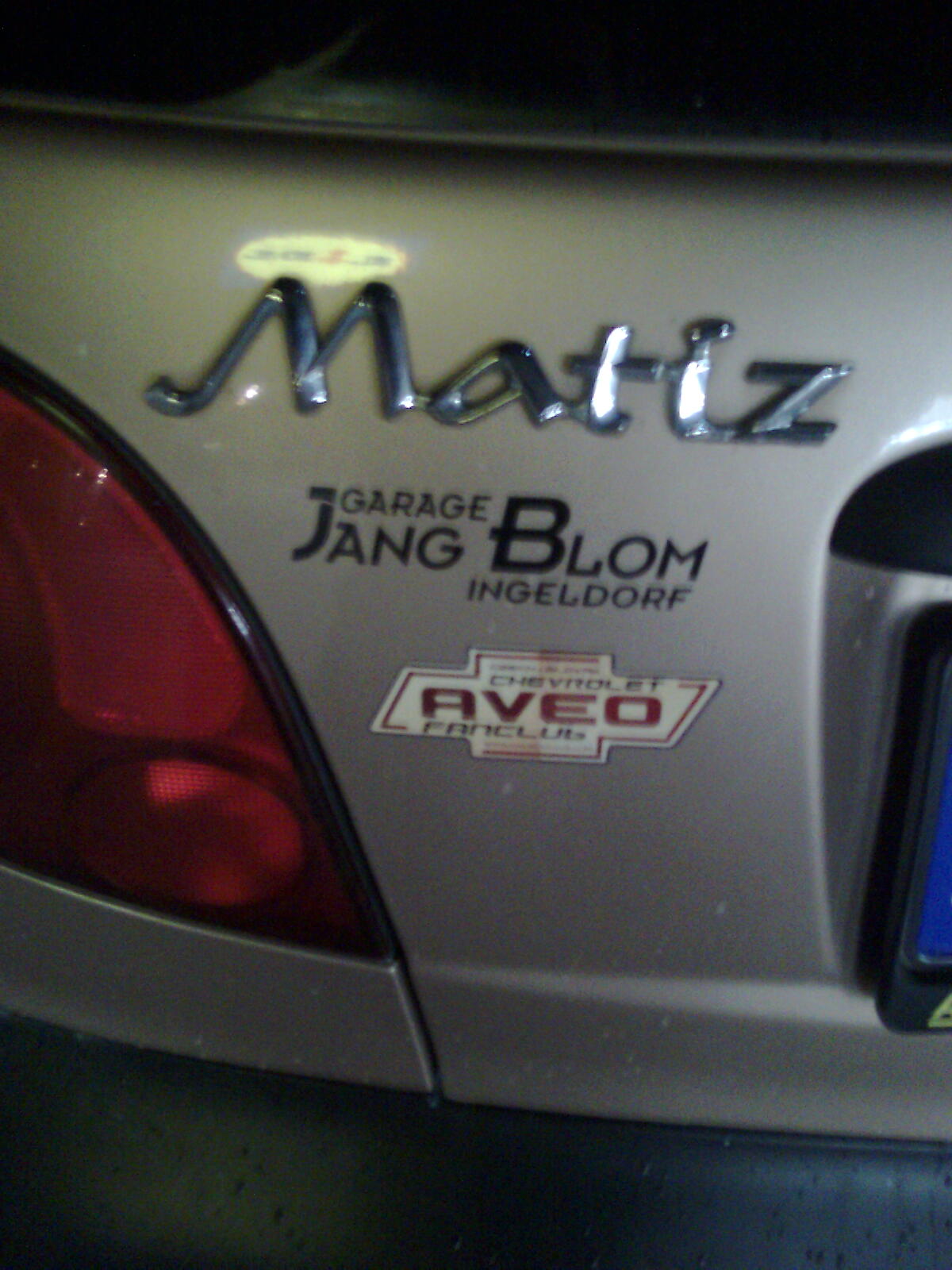 Inak tá fotka čo som si ju dal na chvíľku do Avataru,vznila za iným účelom,chcel som ju poslať do toho servisu a predajne v Luxembugsku,ktorej reklamu asi,možno,ako jediný nosím na Slovensku,tam bol pôvodne servisovaný a aj kúpený moj matízek,ale napokon som im poslal inú zo záberom na celé zadné dvere.