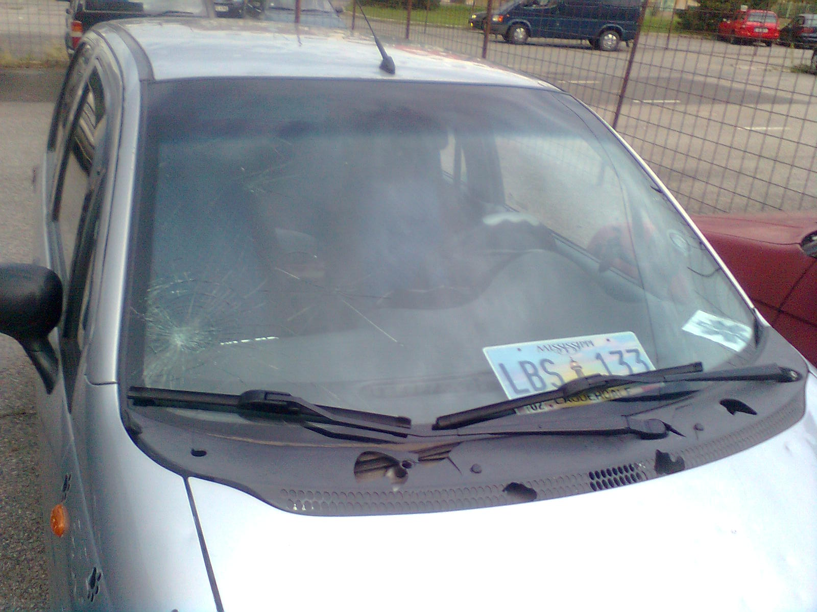 Sklo je samá pavučina,plasty u steraču na cucky a všechny ofuky vedle auta roztřílené.