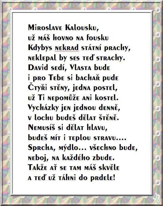 Vždyt' už na toho kreténa Kalouskovic, co tu tento náš stát defakto " řídí " spoluobčané vymysleli i tuto BÁSNIČKU kterou se budou učit děcka ve školách