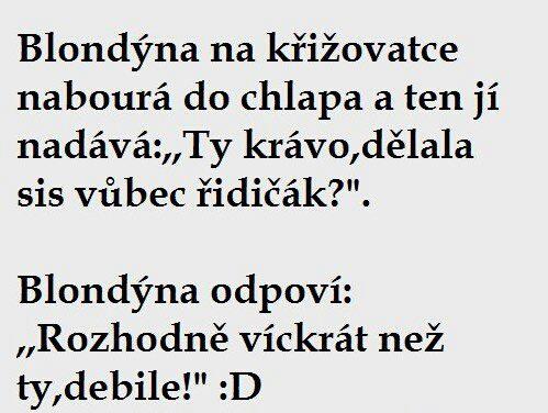 Řidič na přechodu zabrzdí až na poslední chvíli a málem srazí chodkyni. Vyleze z auta a když ženu spatří, zalekne se: 'Nejste vy náhodou Lucie Bílá?'