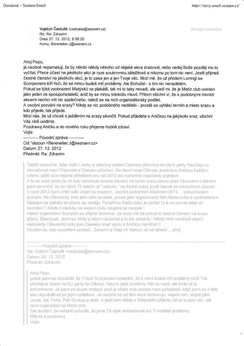 Zdravím všechny na foru a zde zveřejnuji , na přání našeho partafíry Matiz clubu Vojty odpověd na jeho dopis . Všem přejeme s Aničkou příjemné povánoční dny a super Silvestra :o) Lepší Nový rok 2013