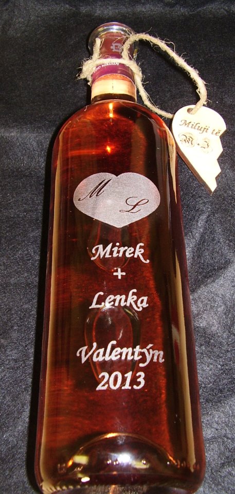 Nápis jak na srdíčku tak na láhvi zcela na vás.