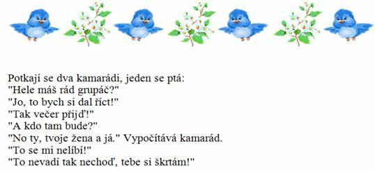 Pan učitel mu na konci hodiny řekne: "Běž, Pepíčku, a kup si kilo rozumu!"