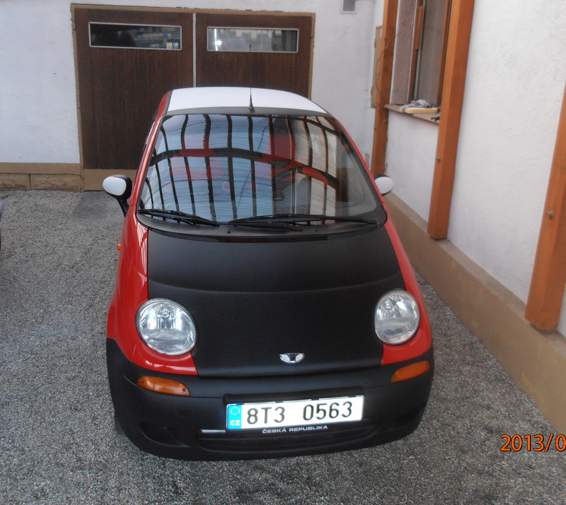 Je to auto pro moji ženu na každodenní jezdění do práce (asi 15km denně). Předchozí majitelé s ním nezacházeli zrovna v rukavičkách, což bylo vidět hlavně na laku a jiných dílech. Motoricky pro změnu byl ošetřován perfektně,je po rozvodech,všechny filtry a náplně vyměněny,nové gumy. Koroze zadních lemů,lehce prahy . Takže jsem tam dodělával : centrál s DO, couvací asistent,denní svícení, zvuk.signalizace zapnutých světel, odhlučnění kufru, nové zadní plato -nebyla tam ani příprava , přelakování blatníku a některých míst, co se mi nechtělo stříkat jsem potáhl karbon.folii. No výsledek je takové hodně veselé malé autko. Osobně si myslím,že takoví prcci se nemusí tvářit jako Mercedes nebo BMW. Zda se Vám bude líbit,nebo ne ,nechám na vás. Tohle forum o Matízech je super a díky za něj.