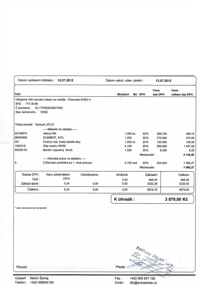 Vše bylo ok,ale začínám uvažovat že při těchto cenách si začnu servis dělat sám.Auto jezdí bez problémů a závady žádné a vyplněná