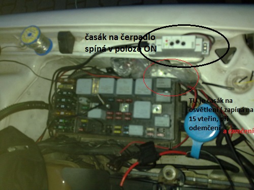 2) sepnutím spínače (č. 2) aktivuji ON ( druhé otočení klíčku ) sepne se časák na čerpadlo.. musí být splněna podmínka: imobilizér, další časák napojen k centrálu na zachování ochrany proti odcizení a jiné zabezpečení, které vám řikat nebudu..:D :o)
