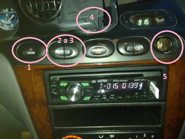 1) jelikož nemám tempomat, tak jsem použil tlačítko na anténu + kontrolku security