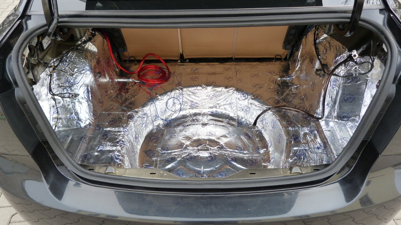 Tak dneska jsem se konecne dostal k vytlumeni kufru, snad pristi tyden uz bude i ocalouneny a budu ho moct namontovat,