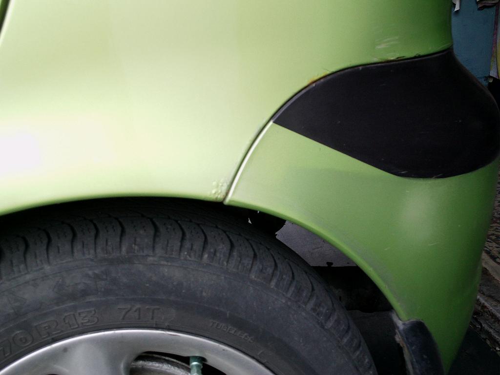 Mě netěší že nějakej de... otevřel dveře a promáčkl lem u kola zadního, je to dvojitej plech takže vytlačit to nepůjde -P Lak je neporušenej , ale za světla je tam důlek, tak nevím co s tím :roll: jedině vytmelit a lakovat, to se mě nechce -P