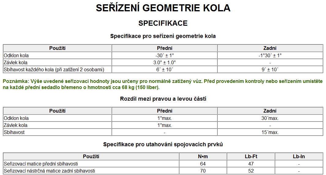 U Daewoo vržou většinou gumy které drží stabilizátor ( takový gumový účka) jinak vzadu se dá seřídit jen souběh (excentrem na tuším zadním ramenu) ostaní hodnoty těžko změníš..... nevzal jsi zadkem třeba obrubník? může být ohnutá i těhlice