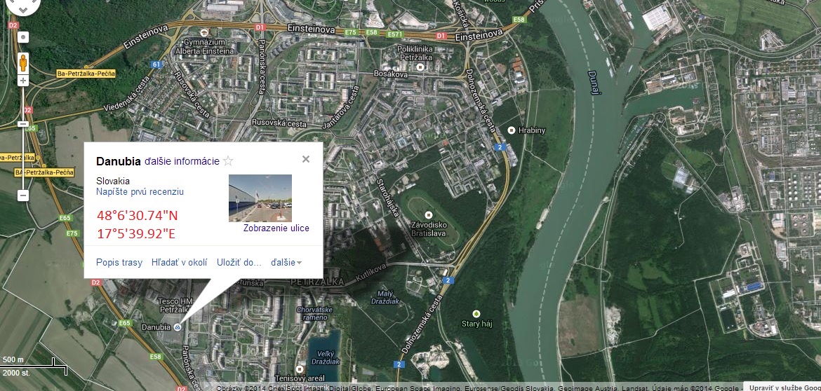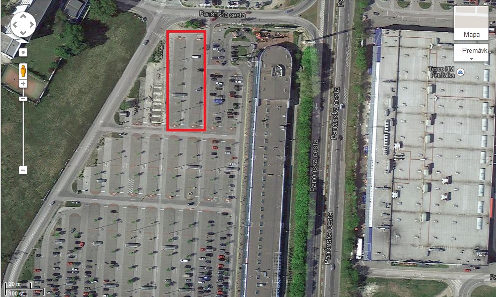 na parkovisku pred Danubia- Petržalka na obrázku časť parkoviska vyznačené červeným štvorčekom.