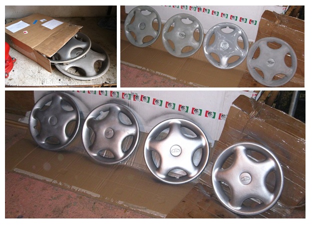 Okrem výmeny kolies za zimnú sadu, sa mi podarilo prostredníctvom inzerátu zohnať k mojim dvom ďalšie dve originálne puklice. Počítal som s tým, že budú ošúchané, preto som všetky štyri prebrúsil a nastriekal body sprejom a strieborným lakom. Myslím, že repasované originálky sú stokrát lepšie než tie fejky z Tesca z lámavého plastu. 8)