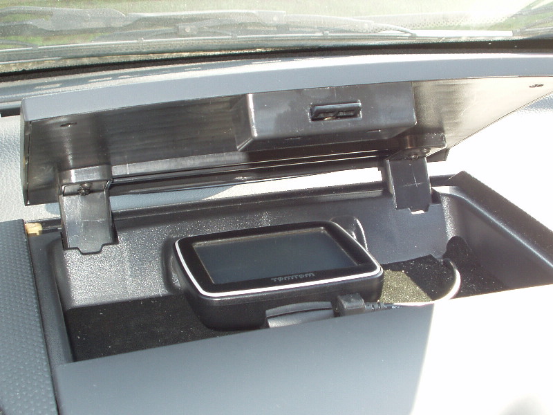 Jozef máš pravdu, schoval som do nej aj navigáciu z roku jedna-dva, aspoň sa nemusím párať s jej montážou a demontážou. Otvorím, vyklopím a fertig. Dráty ku nej a ku kamere na spätnom zrkadle sú vedené skryto z "elektrárne" v spolujazdcovej skrinke. Foto prikladám