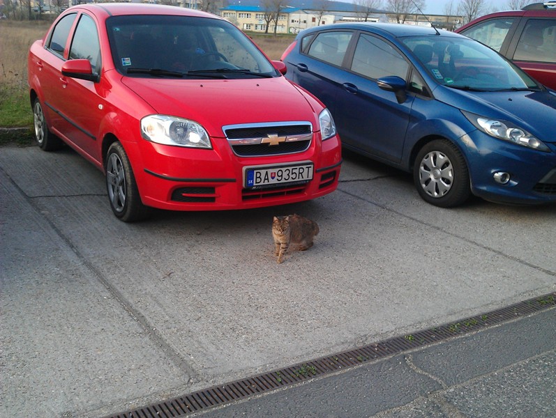 Zaparkujem, príde moja sídlisková mačka - volám ju Diablik, olíže a ožerie mušky z auta -i škoda že nedočiahne aj vyššie :lol: