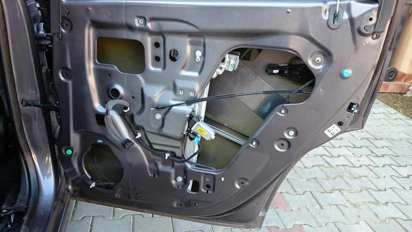 - odpojíme konektor okna, u předních levých ještě konektor zrcátek a odpojíme táhlo otevírání dveří, sundáme tapec