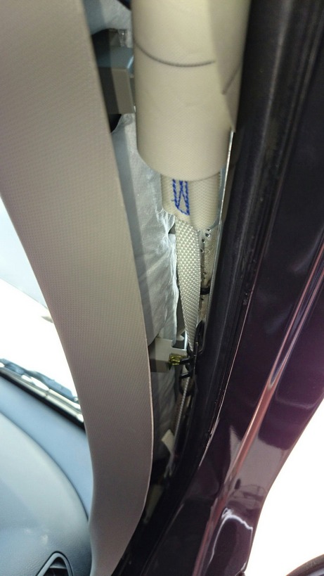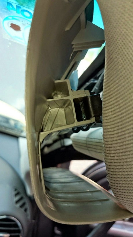 Odtáhnul jsem těsnění abych za sloupek alespoň trošku viděl - nakonec sloupek drží pouze na 1 křapce a 1 jakémsi kontaktu u airbagu. Jde vycvaknout velmi jednoduše.
