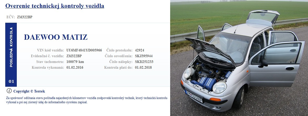 Dnes môj Matiz V/RS najazdil jubilejných 100 000 km a zároveň absolvoval TK+EK, čiže má dva roky zas pokoj. Auto sme na kontrolu pripravili - pri 100 000 bola totiž naplánovaná výmena oleja, olejového, palivového a vzduchového filtra, výmena brzdovej kvapaliny a taktiež sme doťahovali rozperky bubnových bŕzd a prečistili brzdy od prachu z trecieho obloženia, doťahoval som aj ručnú brzdu.