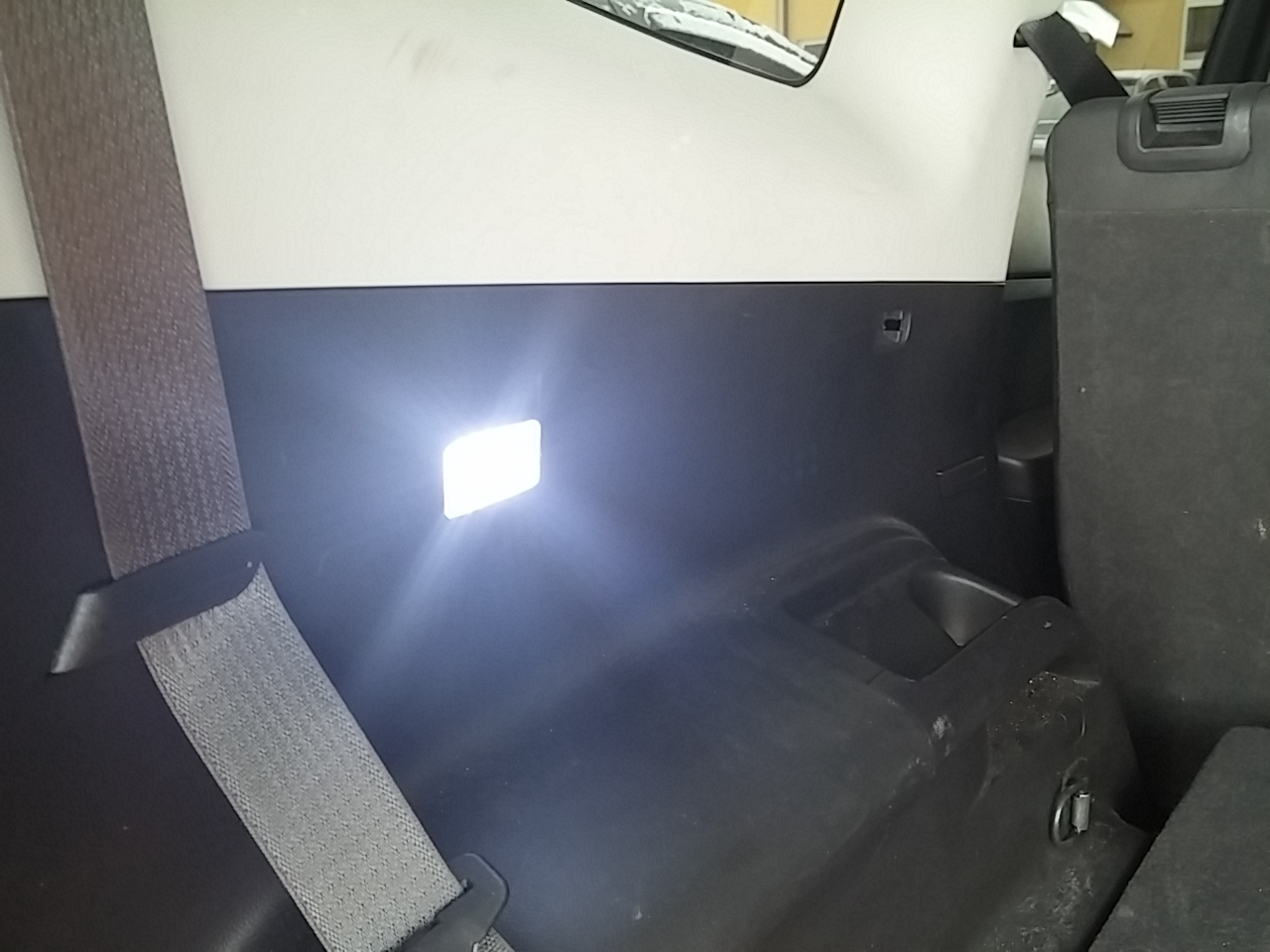 Samotná instalace probíhala poměrně slušně, největší zádrhel byl při vyndavání středové lampičky nad druhou řadou sedadel. Té se opravdu moc nechtělo ven, chtělo to poměrně hodně síly a tlustý šroubovák na vycvaknutí. Protažení kabelu dopředu se mi povedlo asi na čtvrtý pokus, pak už šlo poměrně jednoduše.