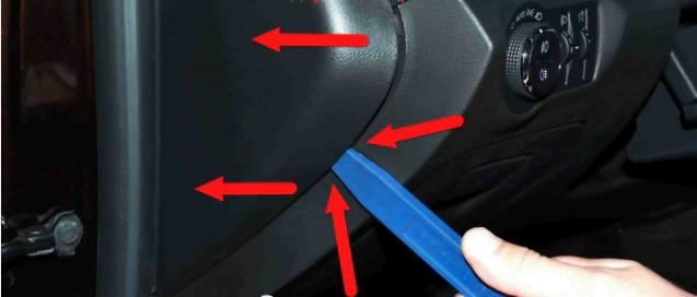 Odkrytí boku přístrojové desky pro protažení kablíku podél okna.
