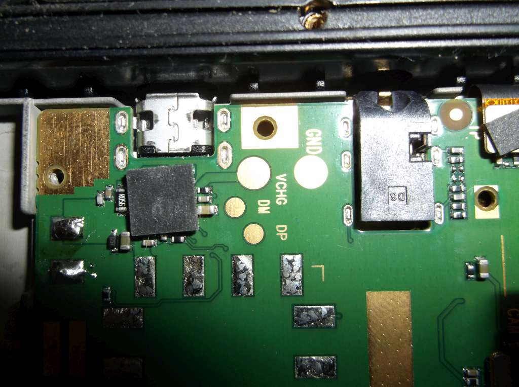 Na desce telefonu jsem našel dokonce vývody +5V z nabíjecího modulu telefonu (VCHG a GND)