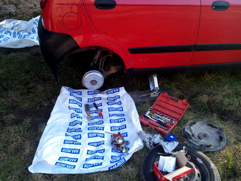 To co jsem zjistil mi vyrazilo dech. Na nápravách 10cm zkamenělého bláta, a kotouče na odpis. -P