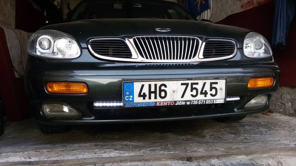 koukám, že máš ty DRL blbě umístěný...... minimálně můžou být od sebe 60 cm, ale ty je máš blíž ( značka má asi 55cm ) a zdá se mi, že je dokonce malinko zakrývá.... jinak jaký DRL jsi sehnal ? ty 8-smi diodový mi přišlo že moc nesvítí, tedy ani nejsou vidět..... jestli jsou to nějaký za 200,- z aukra, tak v číně na sklo daj jakou homologaci chceš ;-) ale s normálníma DRL se spotřebou 5W na světlo seto nedá srovnávat.....