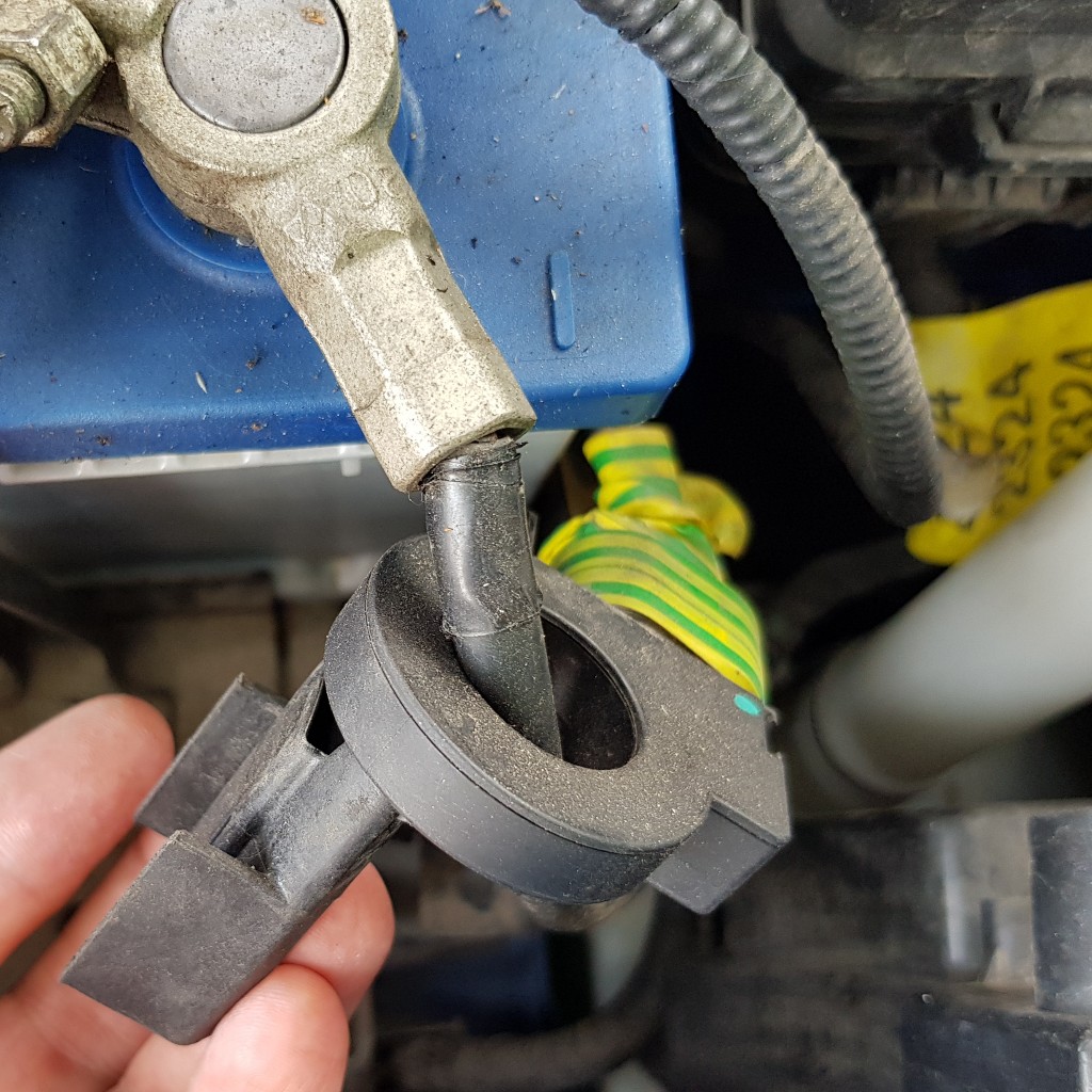 Čo je toto za plastový diel? Od novoty auta je voľne priložený vedľa akumulátora. Je napojený na nejaký kábel a má plastovú objímku. Nikde v okolí baterky nepasuje,ani nedočiahne.
