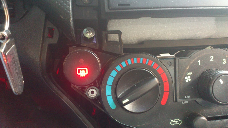 spínač vyhřívání zadního okna má už v sobě ledky s odporem připravené