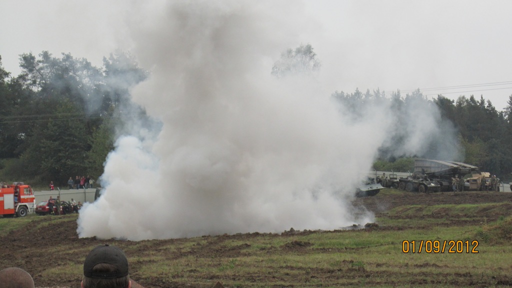 a) tank T-72 provádějící bojové zadýmování