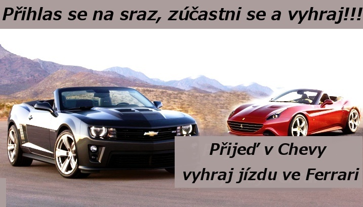 Sorry,ale nemělo by na srazu Chevroletů být spíš jízda v Camaru? Ferrari je asi fakt hustej zážitek,ale Chevy a Ferrari mi moc dohromady nejdou. Ale co já do toho kecám,vždyt já jsem jenom blbej namachrovanej pražák.