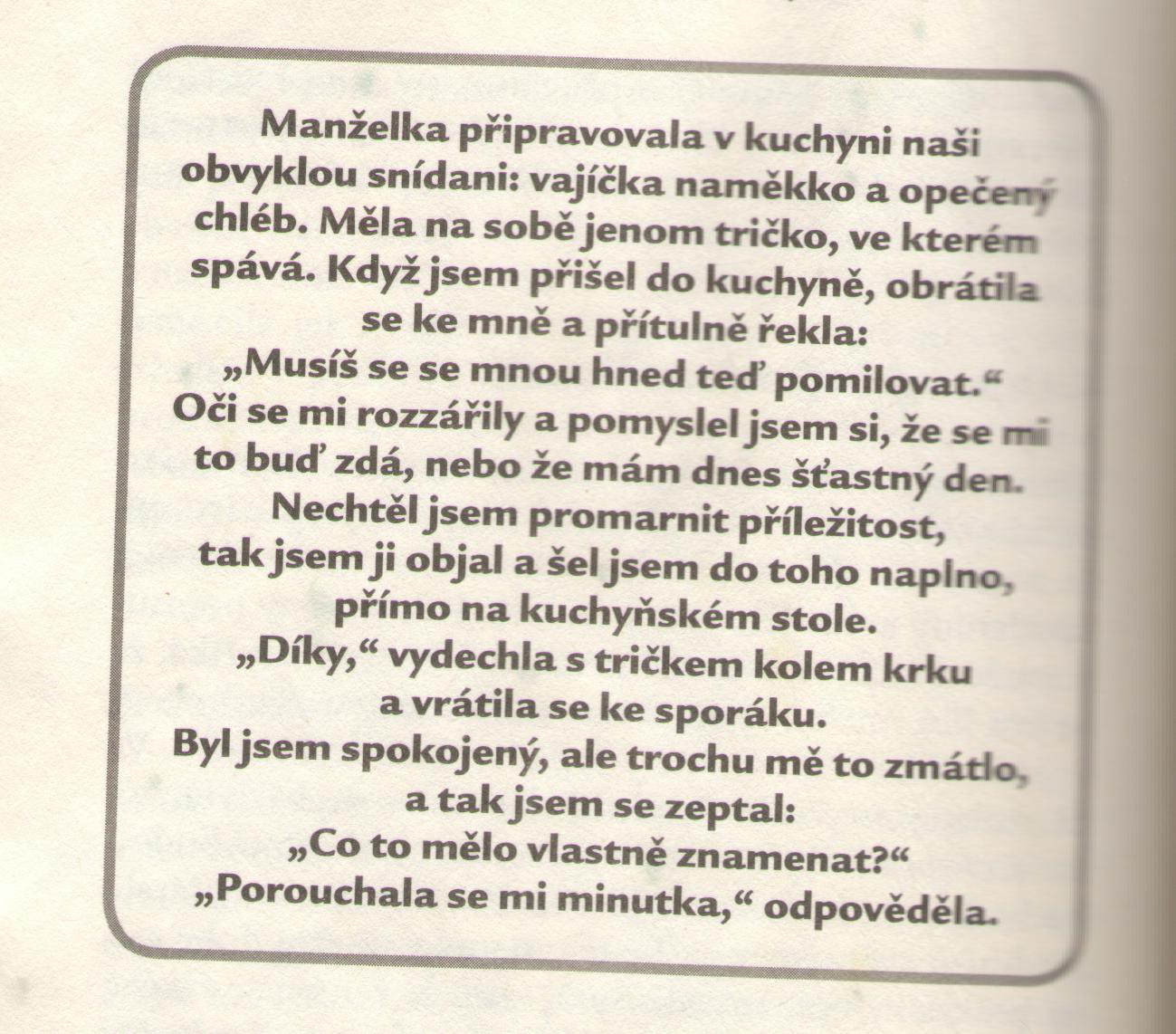 Po dlouhém snažení se žena znechuceně odtáhne a prohlásí :