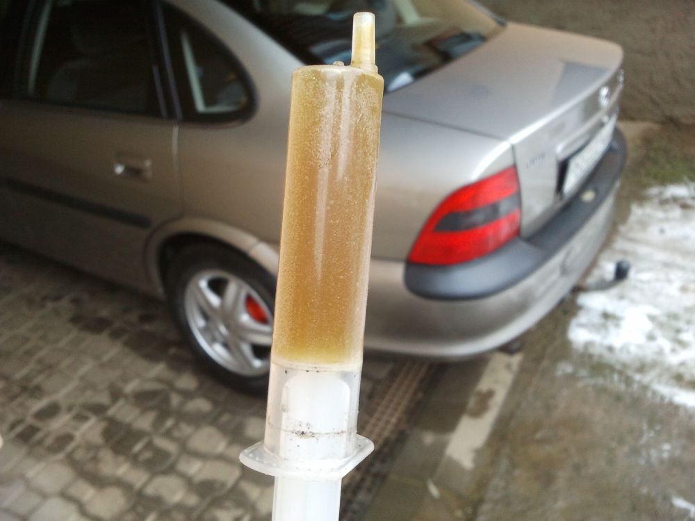 no po pár hodinách se na dně stříkačky usadila pomalu tekoucí černá tekutina. stěny expanzky jsou potažené takovým černým šlemem. na víčku oleje se objevil bílý šlem a malinké bublinky. mám podezření na prasklé těsnění pod hlavou. no ve středu jde Vectra do servisu tak uvidíme. Já už na to nemám čas a hlavně v této zimě, fuj.